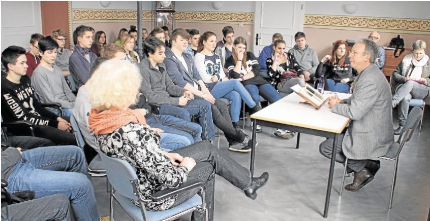 Foto: Eine besondere Geschichtsstunde erlebten zwei Klassen der Realschule plus, als Pfarrer Holger Banse aus seinem Buch über die Lebensgeschichte von Rachel Grünebaum las. Foto: Hans-Willi Kempenich