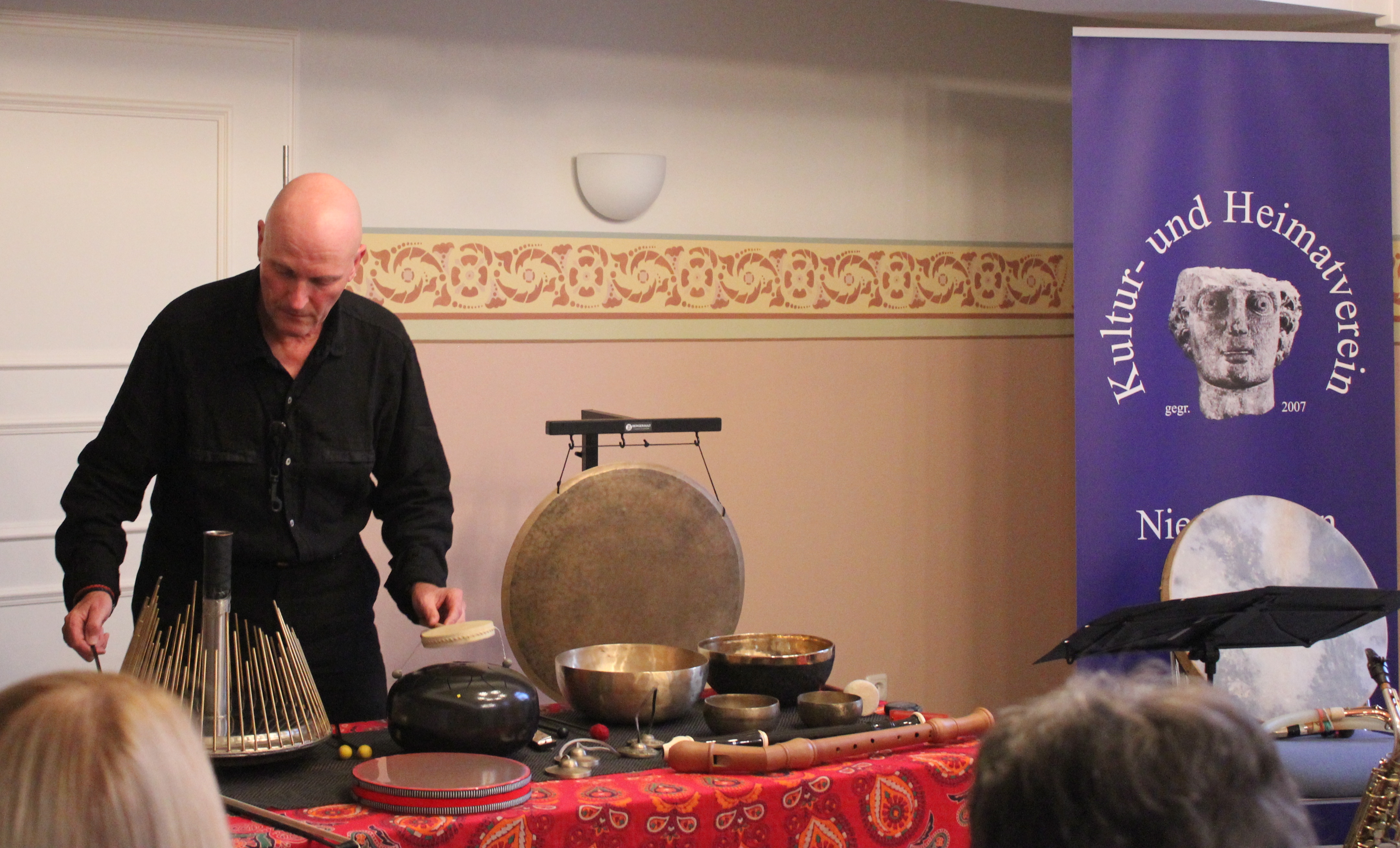 Zum vierten Mal gastierte jetzt Joachim Gies in der ehemaligen Synagoge Niederzissen und bescherte den begeisterten Zuhörern mit seinem neuen Soloprogramm „Belausche die Sterne“ ein erneutes Konzerterlebnis der besonderen Art. Mit Sopranino- und Altsaxofon, diversen Klangkörpern und exotische Instrumenten entwickelten sich Schwebezustände zwischen Wachen und Schlafen, zwischen Lauschen und Tanzen. Abgerückt von der Welt des täglichen Lärmkonsums lauschte ein Großteil der Besucher mit geschlossenen Augen und völlig entspannt den Klängen und Worten des