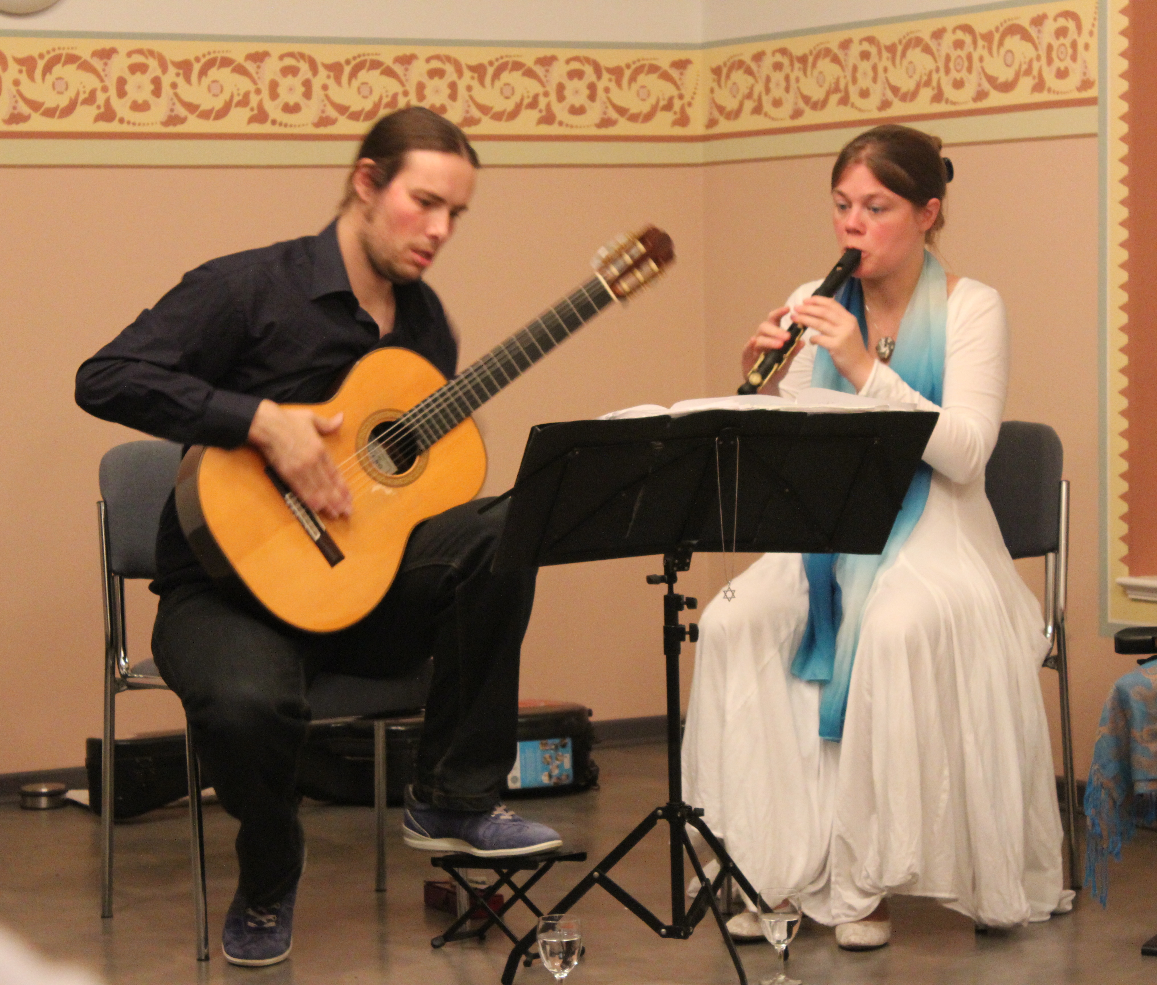 Niederzissen. Zum ersten Mal in den 3 ½ Jahren der Konzerte in der ehemaligen Synagoge Niederzissen erklang Musik in der Kombination Gitarre und Querflöte, meisterhaft vorgetragen vom Duo Anke Kreuz aus Wachtberg-Pech und Achim Busch aus Bad Godesberg. Dabei beeindruckte Anke Kreuz mit ihren drei